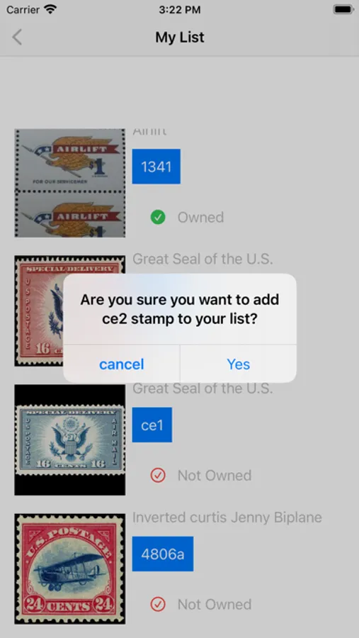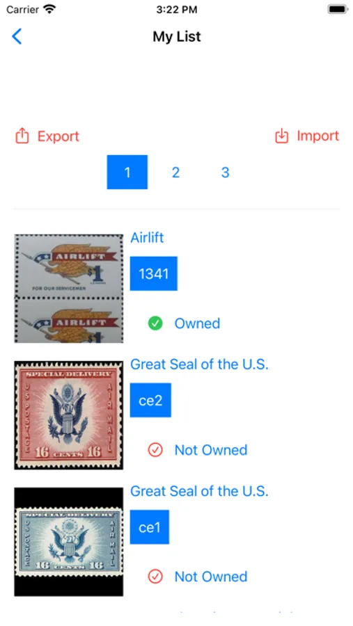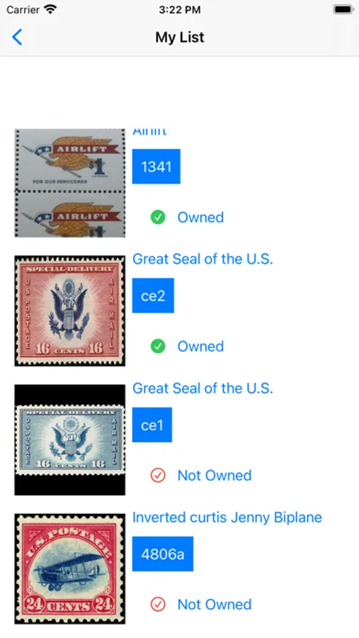 - list with all your postage stamp with just a touch