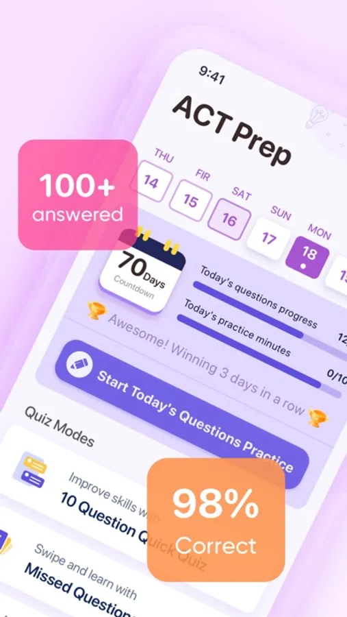 The most important part of passing the ACT is to keep practicing and not lose confidence in the test. You will find that each time you practice on the ACT Exam Prep 2023 app, your knowledge of the exam increases, thus increasing your certainty of passing the exam.