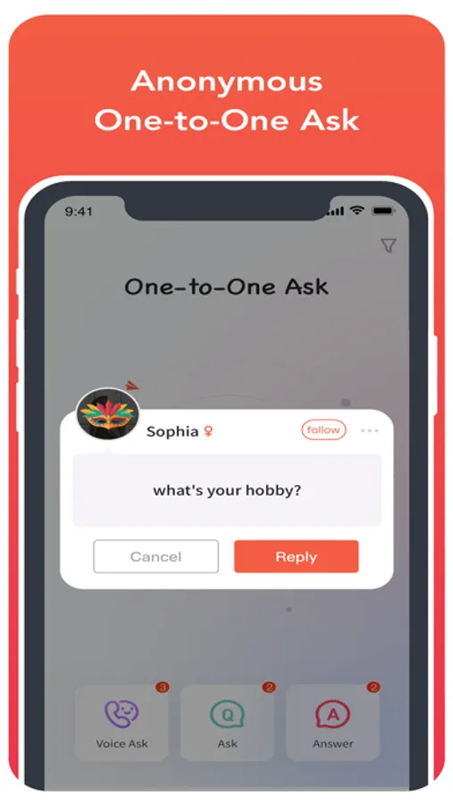 AskA is an anonymous chat app where you to ask questions by text message, voice message, or audio call anonymously. It is a safe place where you can meet friends, ask questions and get answers from strangers anonymously. You can ask questions and share opinions, secrets, or stories that can not be told in real life. No matter whether you are straight, bisexual, lesbian, or transgender, you will never worry about any judgment or embarrassment!