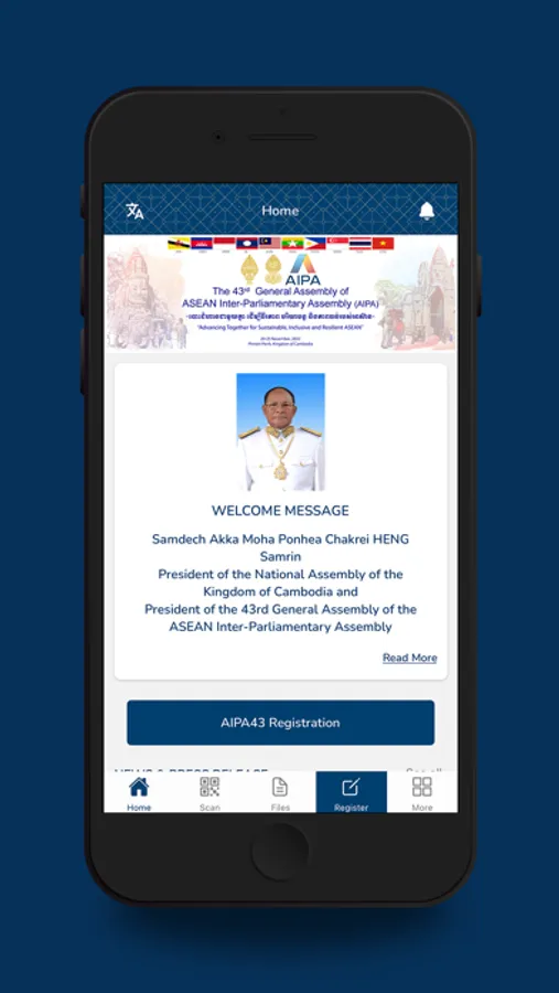Welcome to the official mobile application of the 43rd General Assembly of ASEAN Inter-Parliamentary Assembly (AIPA), AIPA is an important multilateral regional forum for ASEAN Member Parliaments and Observer Parliaments to meet, discuss, exchange views and best practices, and adopt resolutions to address regional issues to promote cooperation, peace, stability, people-to-people connectivity and friendship within the region and across the world.