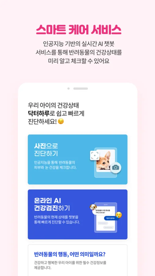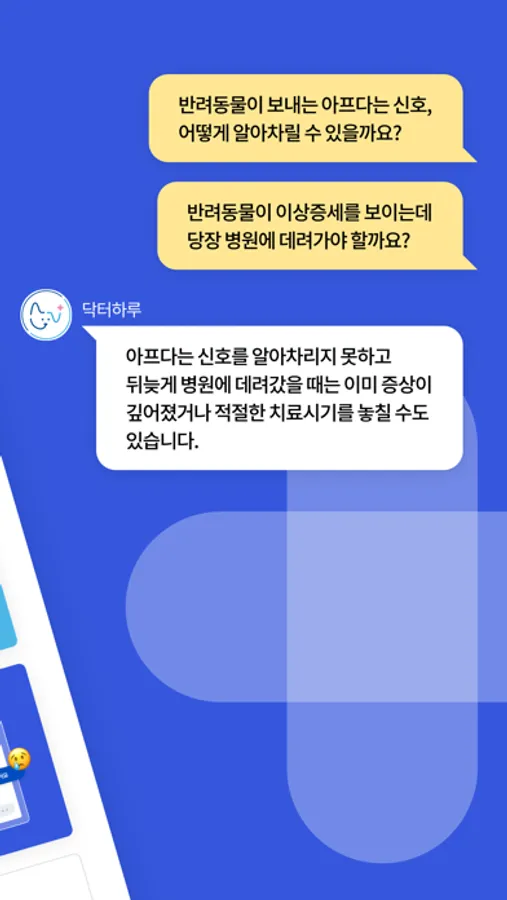 닥터하루의 AI 진단 서비스에서 제공하는 모든 정보는 일반 보호자들의 편의를 위한 정보 제공에 그 목적이 있습니다. 닥터하루의 AI 진단 서비스는 수의사의 의견, 진단, 치료를 대체하지 않습니다. 그러므로 반려동물이 응급한 상황이라고 생각하신다면 바로 동물병원에 문의하거나 내원해주세요. 닥터하루의 AI 진단 서비스에서 제공하는 정보는 방문하는 동물병원에 있는 수의사의 진단과 다를 수 있습니다.