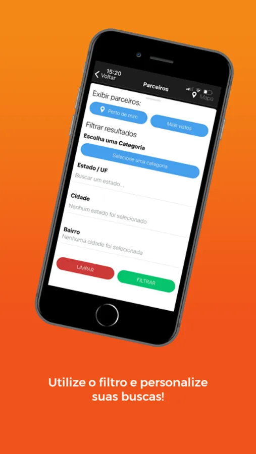 Busca de parceiros através do geolocalizador, filtragem personalizada para as buscas de empresas parceiras, acesso ao cartão virtual para utilizar os descontos, acesso a notícias e além do SAC para atendimento.