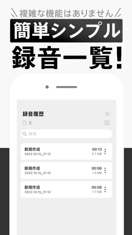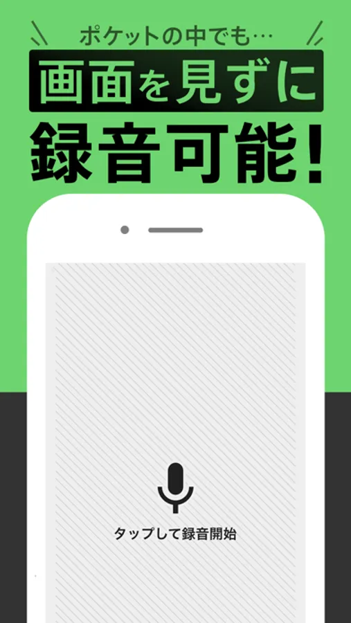 画面全体が録音開始ボタンなので押し間違いで録音失敗するケースはありません!