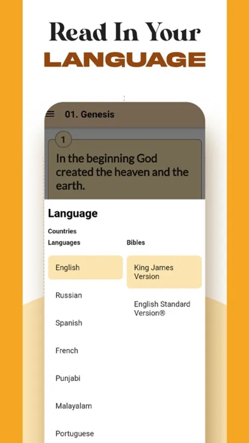 ● Popular versions: King James Version KJV, English Standard Version ESV, La Santa Biblia Spanish (LSB), 1910 Louis Segond French