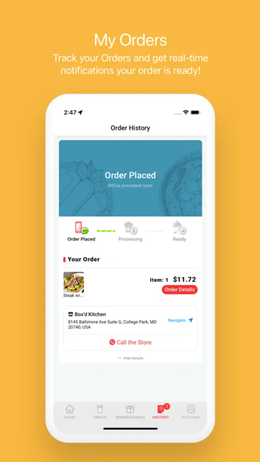 Track your Orders and get real-time notifications your order is ready!