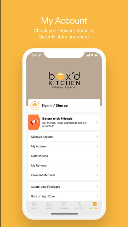 Check your Reward Balance, Order History and more.