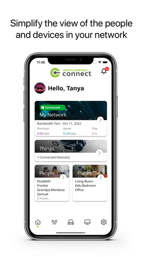 Control your smart home experience with SCC SmartNet. Manage your network by assigning devices priority, implementing parental controls, and creating your own guest networks. View network usage, perform speed tests, and manage your SSID for total control.