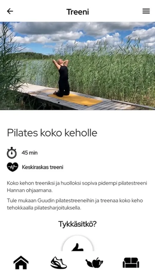 Guudista löydät eritasoiset ja -pituiset treenit jokaiseen tilanteeseen. Huoltavaa pilatesta, Yin-joogaa ja Fascia Methodia liikkuvuuden lisäämiseen ja palautumiseen. Fit Pilatesta ja rankempaa joogaa kovempaan treeniin ja tanssitreenejä hien nostattamiseen sekä hauskanpitoon. Guudista löydät terveelliset, suolistoa hellivät ja kehon stressiä ja hiljaista tulehdusta vaimentavat reseptit. Guudin mukana saat myös kokonaisvaltaisen paketin stressinhallintaan ja rentoutumiseen: kuunneltavia ja rauhoittavia kehonhuoltoja, äänimaljarentoutuksia, rentoutusharjoituksia ja ohjattua vyöhyketerapeuttista itsehoitoa.