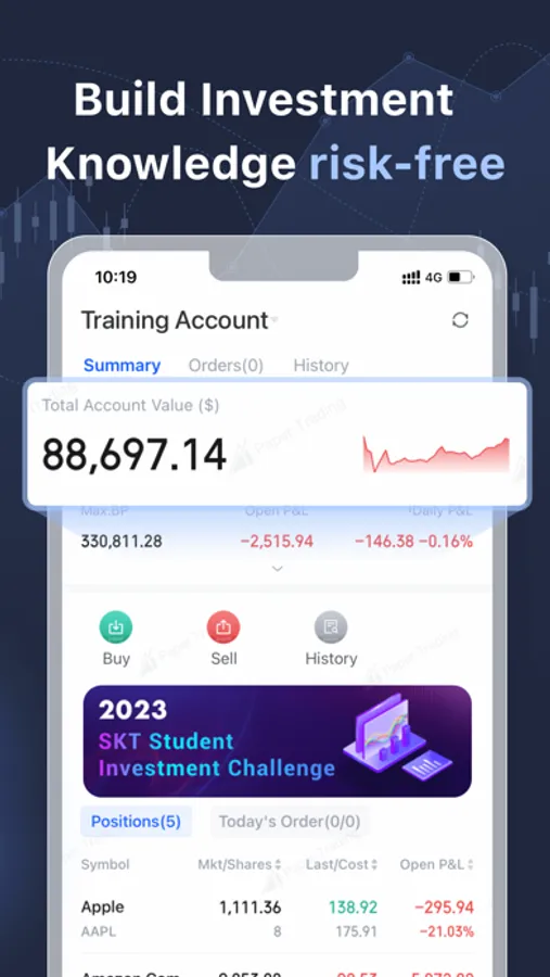 Start off with $100,000 in virtual cash and you can place unlimited trades. With customized watchlist, advanced charts and easy-to-use interface, you are set on your way to enhancing your stock market skills and developing new strategies without losing a single penny!