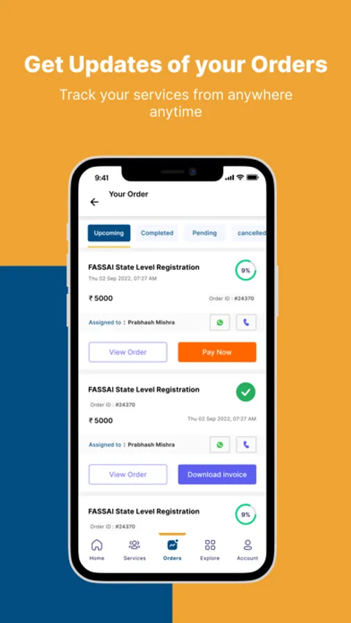 We strictly follow the deadlines and everything is tracked by our CRM. We have done 90% automation in the consulting process from order generation to order allocation to a CA or lawyer through our system. You can also connect with us on Whatsapp App, as and when you find it necessary.