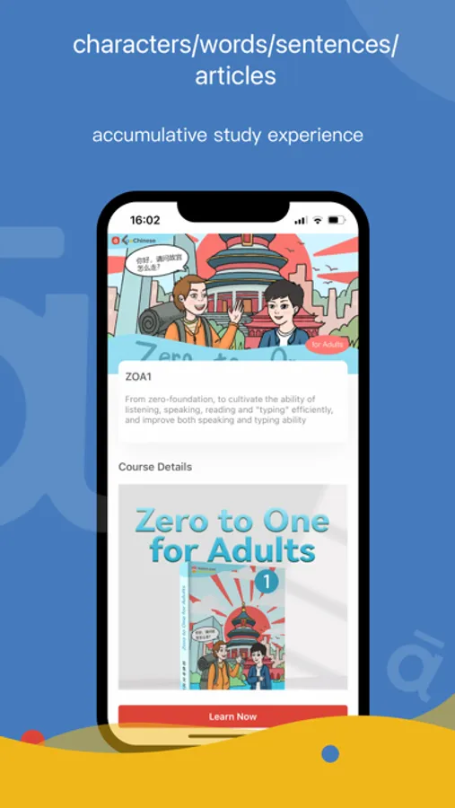 AoeChinese has a well-established curriculum system that has courses for kids, teenagers and adults, including Zero to One for Kids, Zero to One for Juniors, Zero to One for Adults and Crash Course on Pinyin. On top of the basic knowledge courses such as Zero to One series, we also roll out courses of corresponding levels on cultural interests and skill training.
