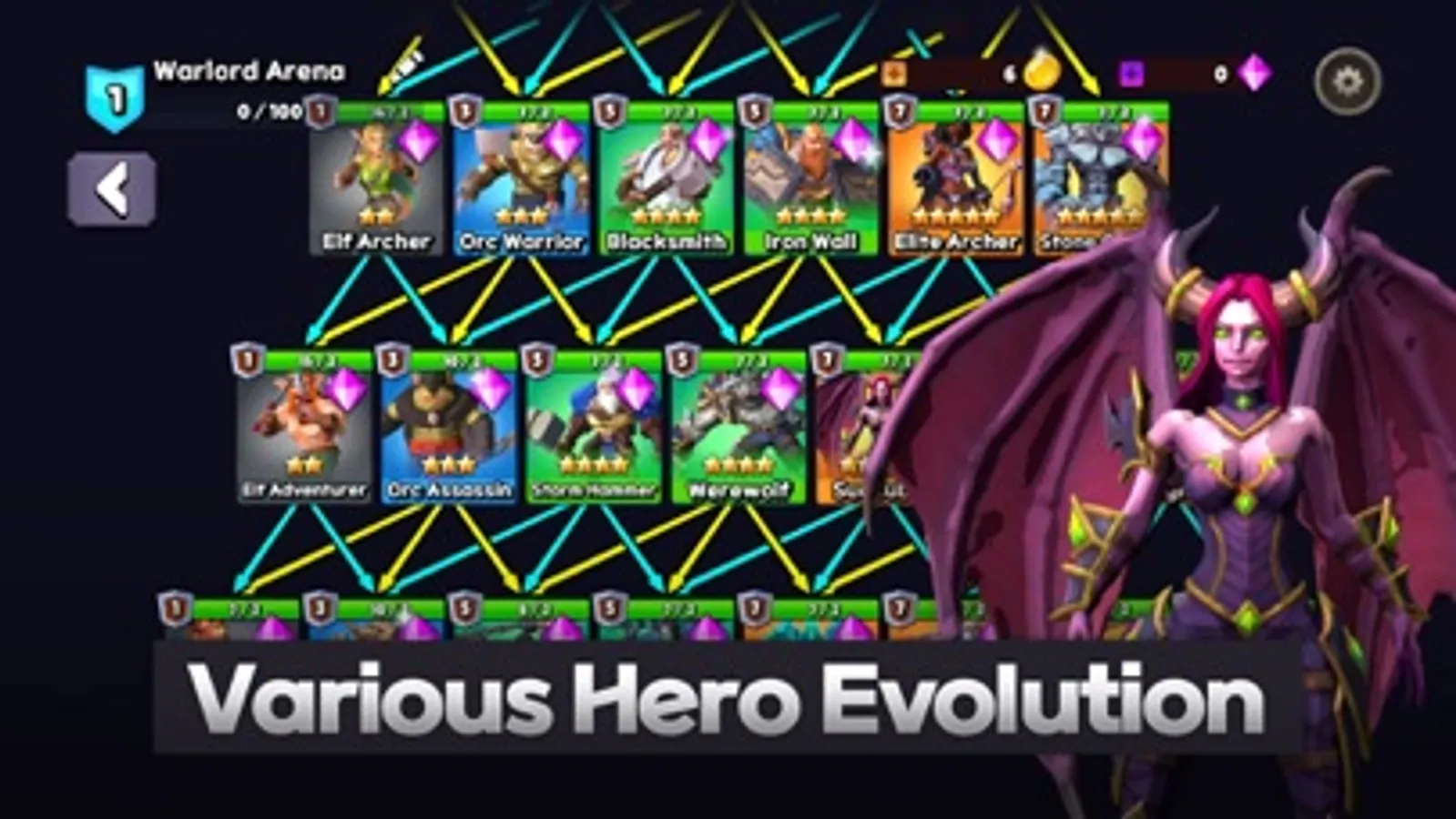 ▶ Unlock various heroes along the evolution tree and grow them stronger!