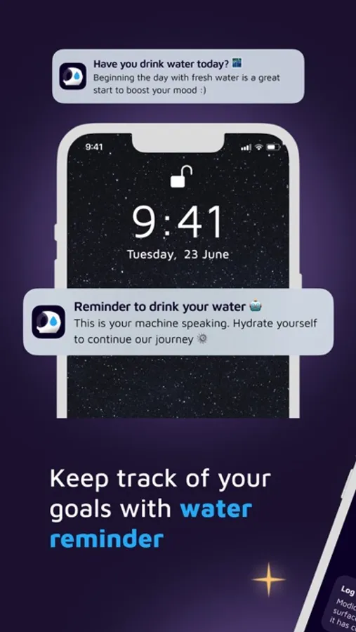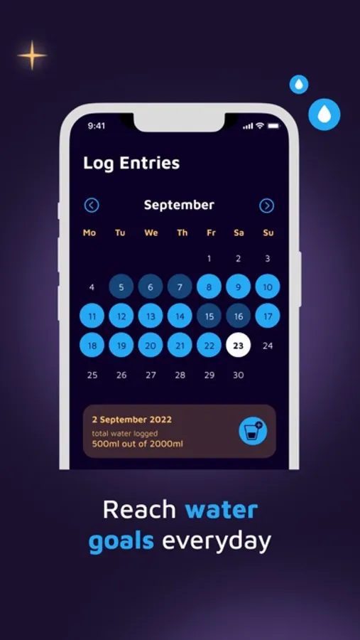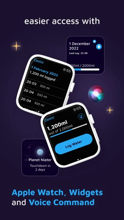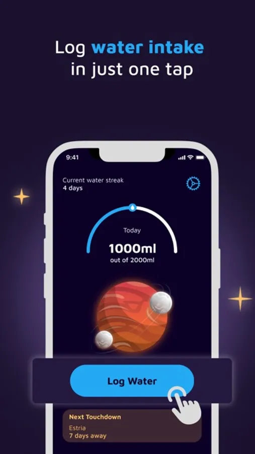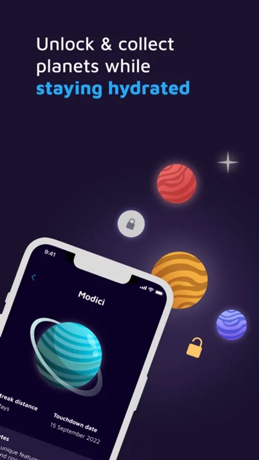 Casini Water Tracker helps you track your water intake and achieve your daily water goals in illustrative space simulation.