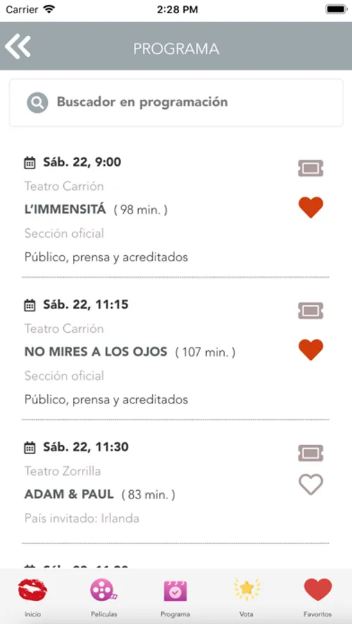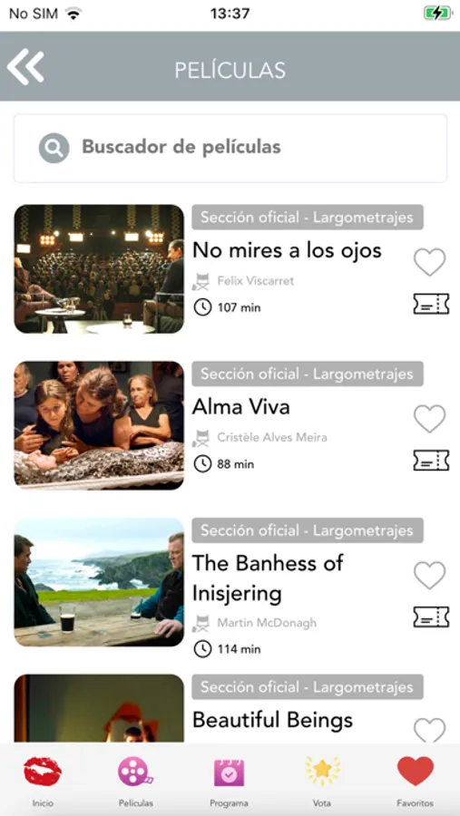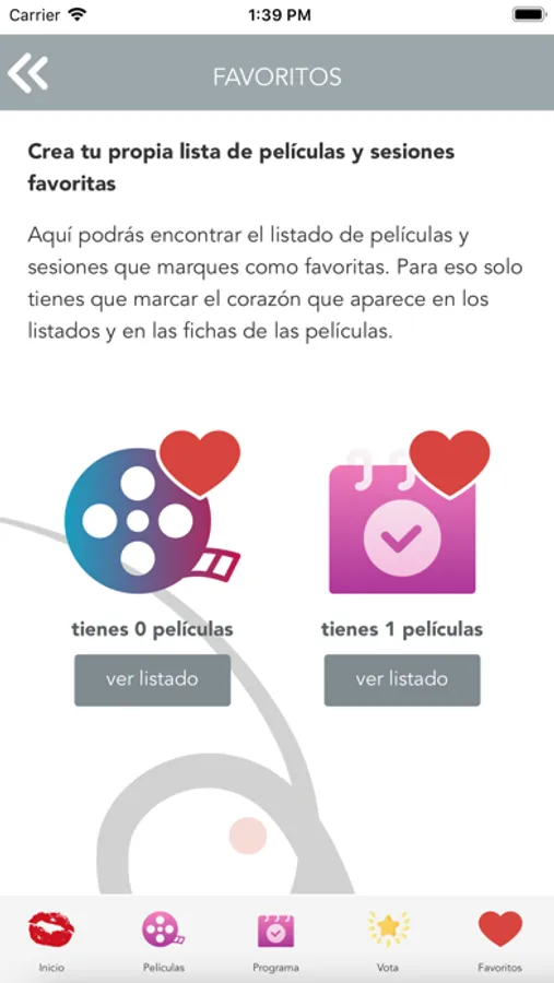 Planifica tu festival gracias al sistema de favoritos, que permite crear una lista individual tanto de películas como de sesiones, y no te pierdas nada de lo que te interesa.