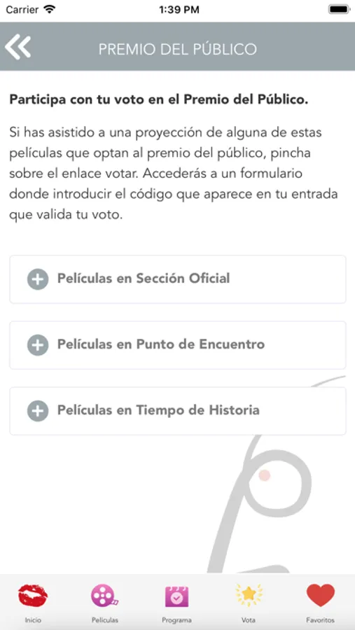 Tu también puedes participar con tu opinión otorgando el Premio del Público. Accede a la sección "vota" e introduce el código de tu entrada para validar tu voto.