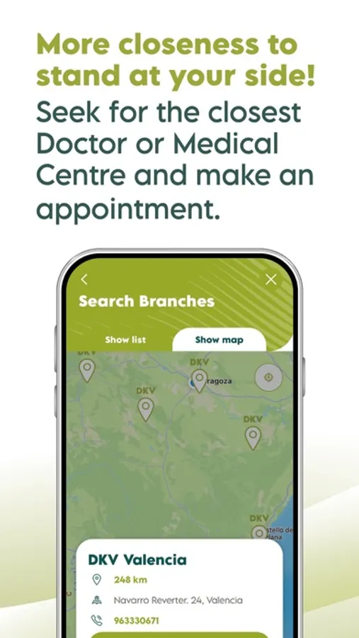 - Location: to help you to find the closest Doctors, Medical Centres and DKV Local Offices.