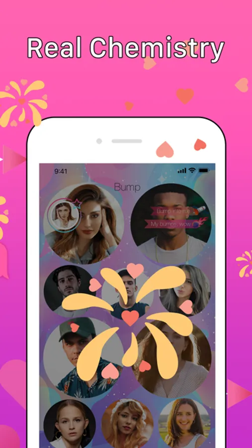 Bump: It is a game that we show strangers on the scrolling screen, and you can casually double click on the avatars to bump into others to show you are interested in further communications.
