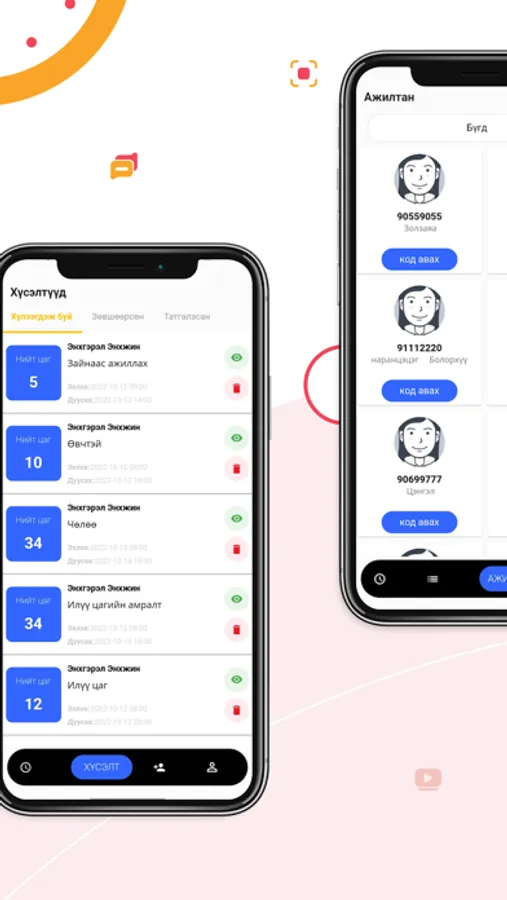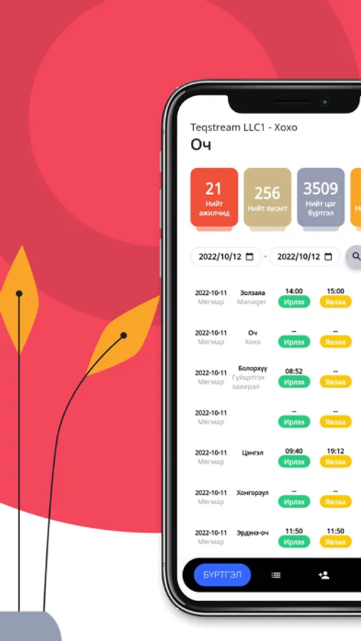 - Ажилтан ирэх явах цагаа бүртгүүлэх