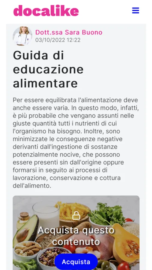 Su Docalike puoi seguire i professionisti per leggere i loro approfondimenti esclusivi, attivare micro-abbonamenti, prenotare consulti, acquistare ebook e partecipare a webinar.