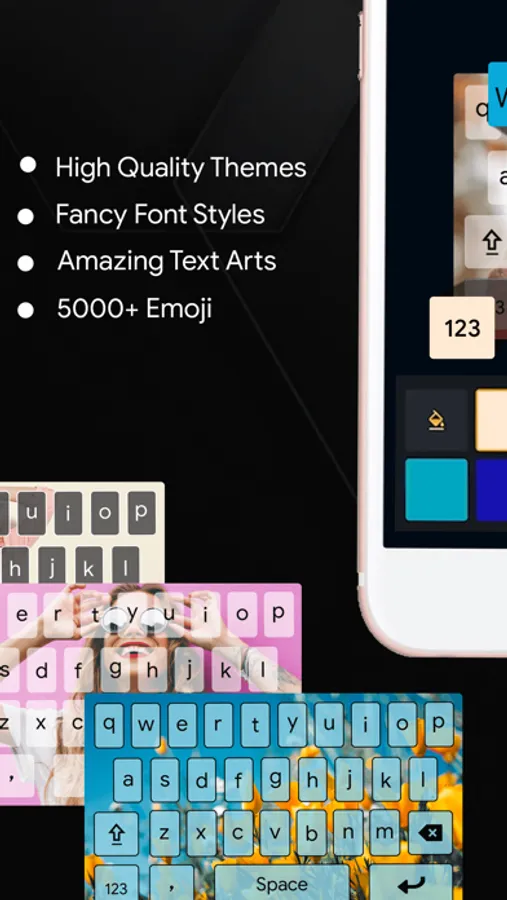 My Photo Keyboard With Fonts Provide 20+ themes and more than 1000+ emojis.