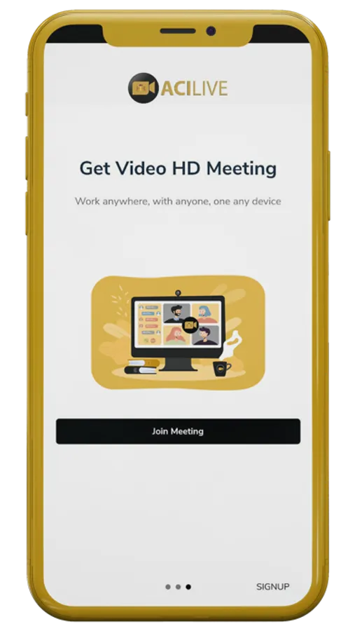 It's super easy! Install ACI LIVE® app, click on "New Meeting," and invite up to 70 people to join you on video meetings.