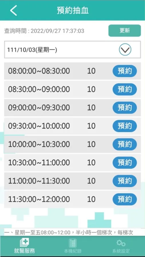 4.預約抽血:提供預約抽血、抽血預約查詢及取消,民眾於預約抽血時段報到,可享有優先抽血服務。