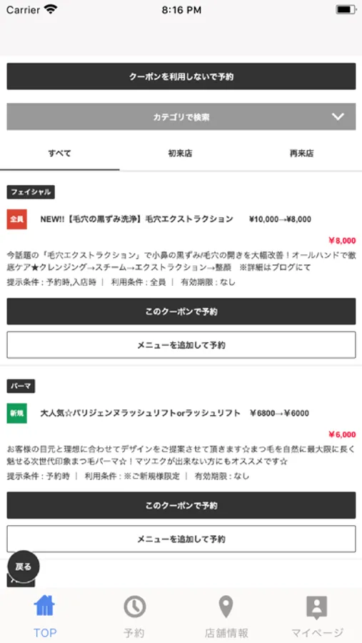 お得なクーポンが配信されます。ネット予約時にクーポン利用での予約も可能なので来店時もスムーズに施術頂けます。