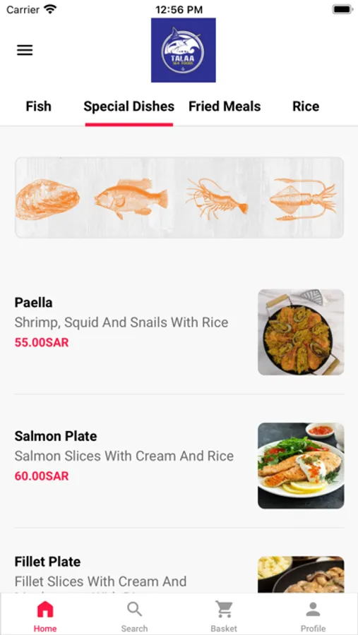 نقدم أطباق مأكولات بحرية مختلفة