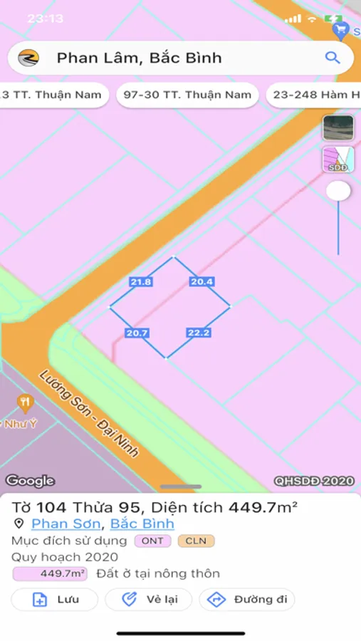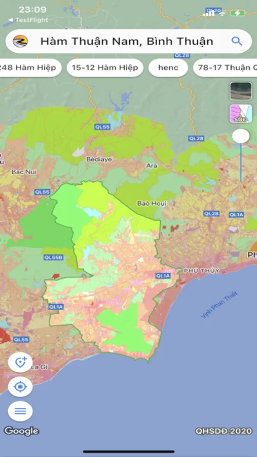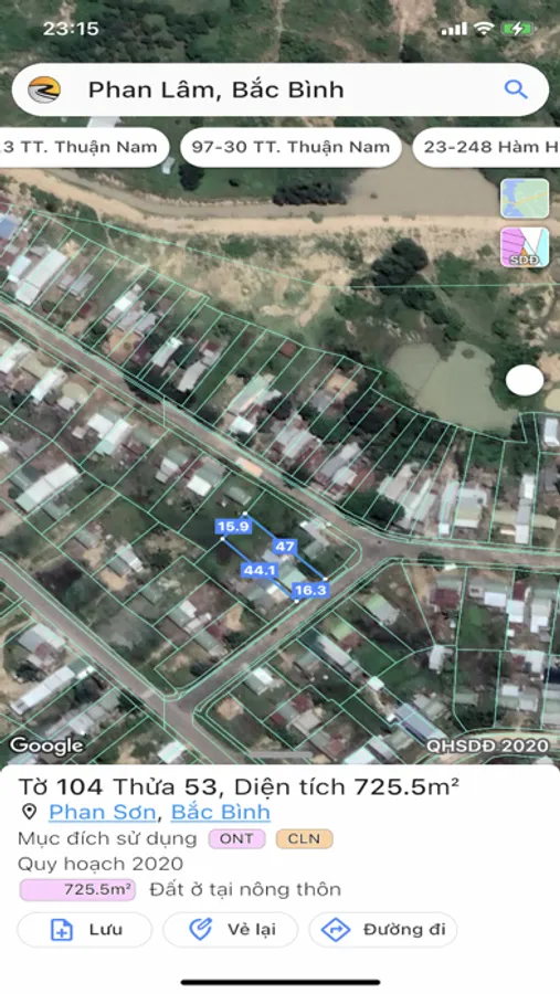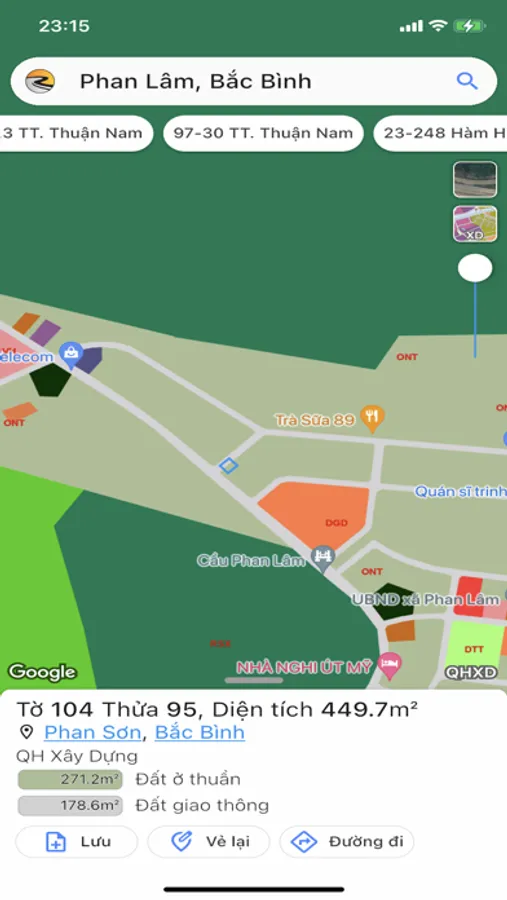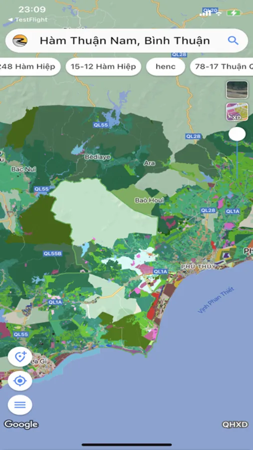 1. Định vị vị trí thửa đất hiện tại của người dùng có vào diện quy hoạch hay không.