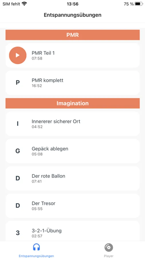 Über diese App kann auf Anleitungen zu Entspannungsübungen zugegriffen werden.