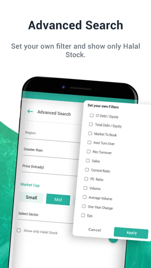 * Advanced Filtering: Filter by country, by sector, by ratios, by only halal stocks, etc.
