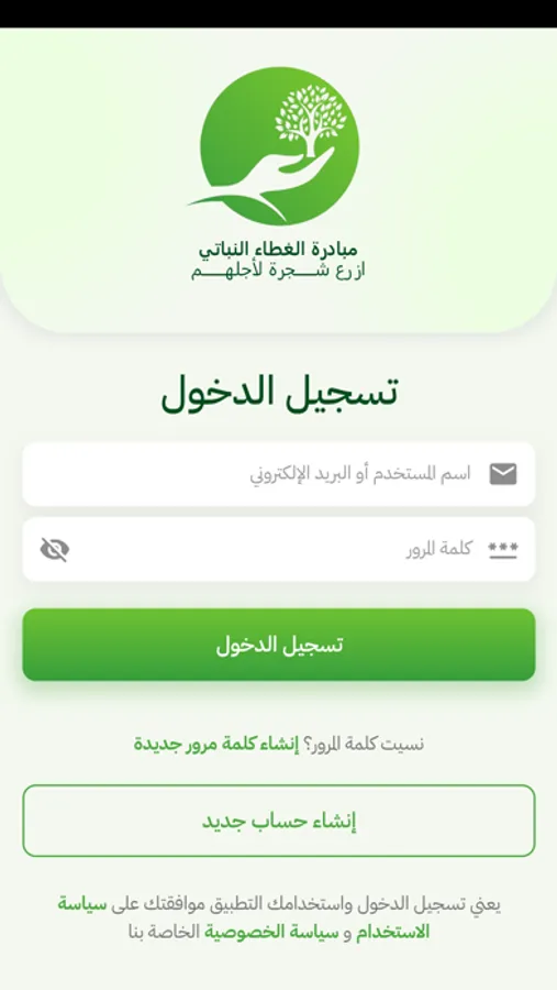 التطبيق الخاص بمبادرة الغطاء النباتي ازرع شجرة لأجلهم.