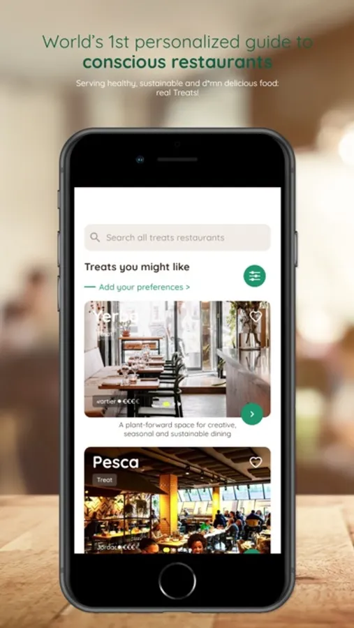 Treats is the very first app that matches consumers with restaurants based on their conscious values and offering (local, seasonal, organic, circular,...) unavailable on other platforms.