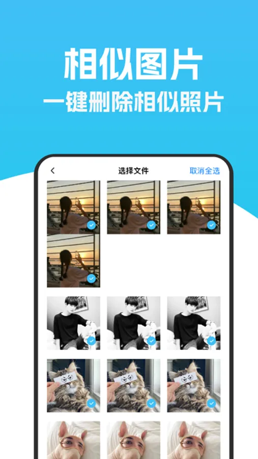 你可以对照片进行压缩尺寸、可以对比相似的照片、视频进行管理、模糊照片筛选等