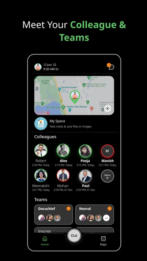 Nexaei Colab enables team collaboration and employee attendance enjoyable in the "work from anywhere" era. enhancing teams' and organisations' visibility and promoting timely interactions and collaboration between them to improve coordination and increase productivity. Colab UX by Nexaei develops around teamwork. The "Moment of Truth" feedback and "just in time" response and data visualisation