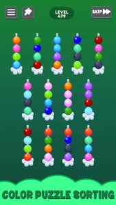 This game is very relaxing sorting game. It is suitable for all ages and sharpens your mind at the same time. You just need to tap the color balls and sort the same colored balls in the hoop until all of them are together in the same stick hoop.