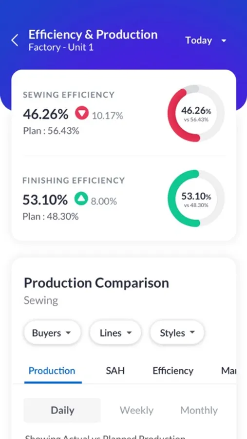 We take all the inputs and convert the manual reporting process to a full-fledged digital solution helping you make data-driven decisions to increase quality and efficiency, the entire data would be present at your fingertips on the go. View real-time output analytics across all the departments, sections, floors, and lines in the factory Detailed graphs, charts, and reports for daily, weekly, and custom date range Track production, quality, order, and WIP metrics Easily downloadable excel reports which are organized by functions and departments
