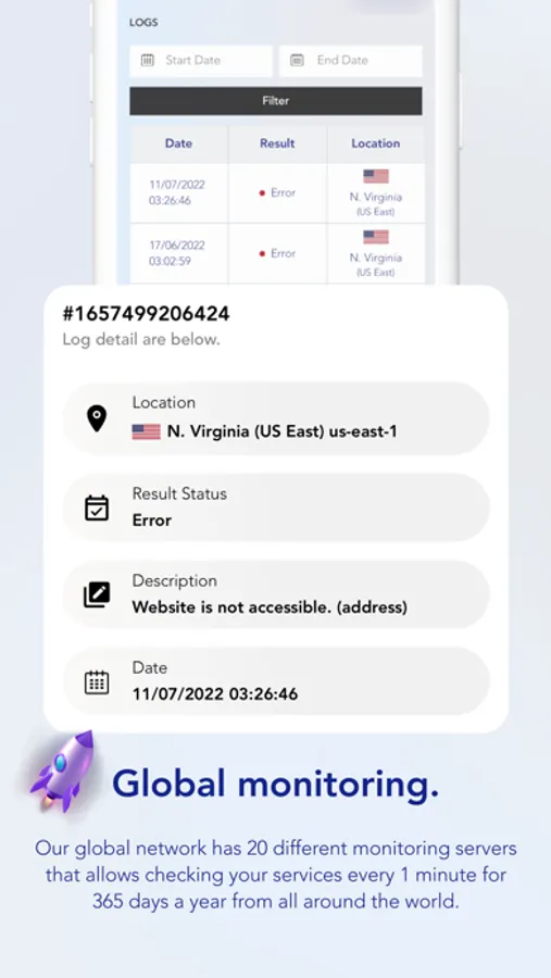 Monitor your services from 20 different locations around the world. We will notify you before your customers when your services break. Sit back and relax. Focus on your business. Let us worry about your services uptime.
