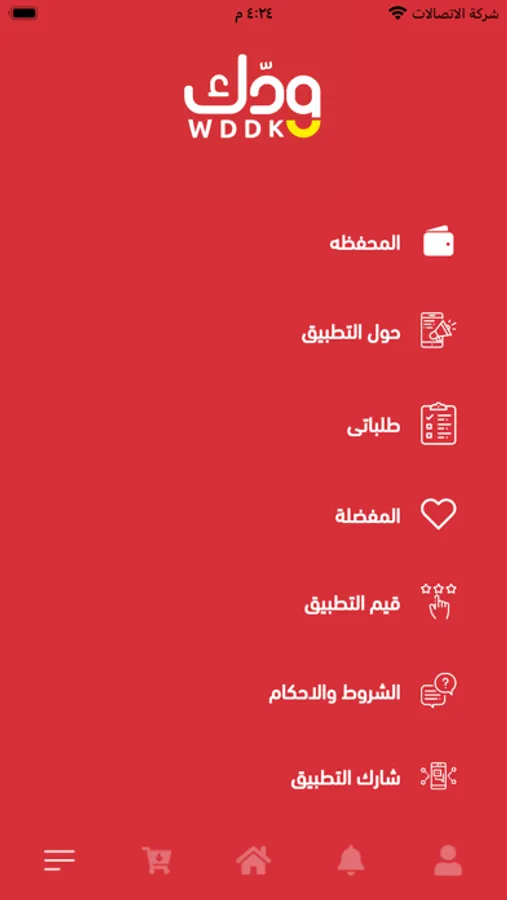 تطبيق ودّك سهل الاستخدام وسهل الطلب من خلاله بدون تعقيد فقط بضغطة زر اطلب من الأقسام المختلفة بالتطبيق"