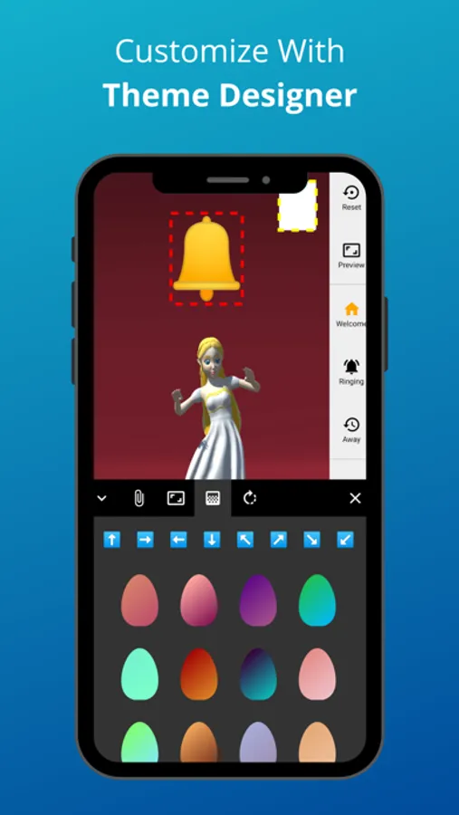Besides an extensive library of themes, linkA Bell incorporates a themes editor for creating your own themes on the fly.