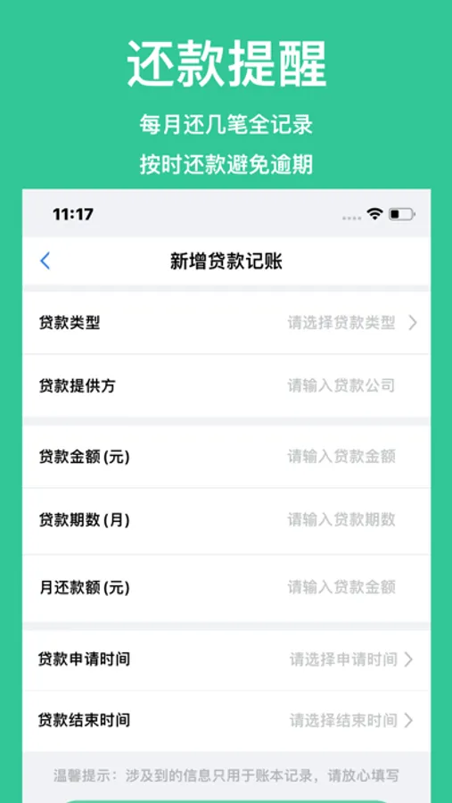 5秒记录:极简体验,只需5秒即可记录一笔贷款记录。