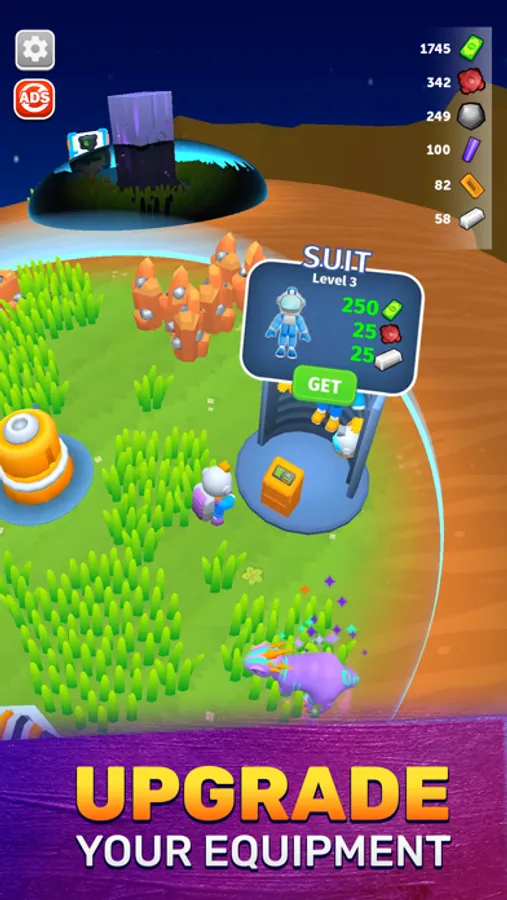 As a captain, conquer planets and improve your character. You will use your high tech pick axe for grinding the resources. Resources can make you rich! Upgrade your character's pickaxe, space suit and backpack!