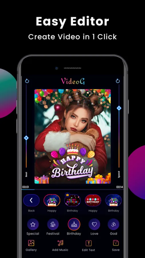 VideoG is a Video Status Maker and Particle Photo Status maker. You can create Photo Status, Birthday Video Status, Wedding Video Status, Love Video Status, God Video Status and many other awesome videos.