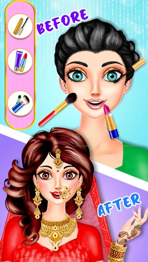 Give a classy fashionable looks with branded cosmetics in the wedding games. Enhance your dress up and makeup fashion expertise that will help you to become efficient wedding day makeup artist.