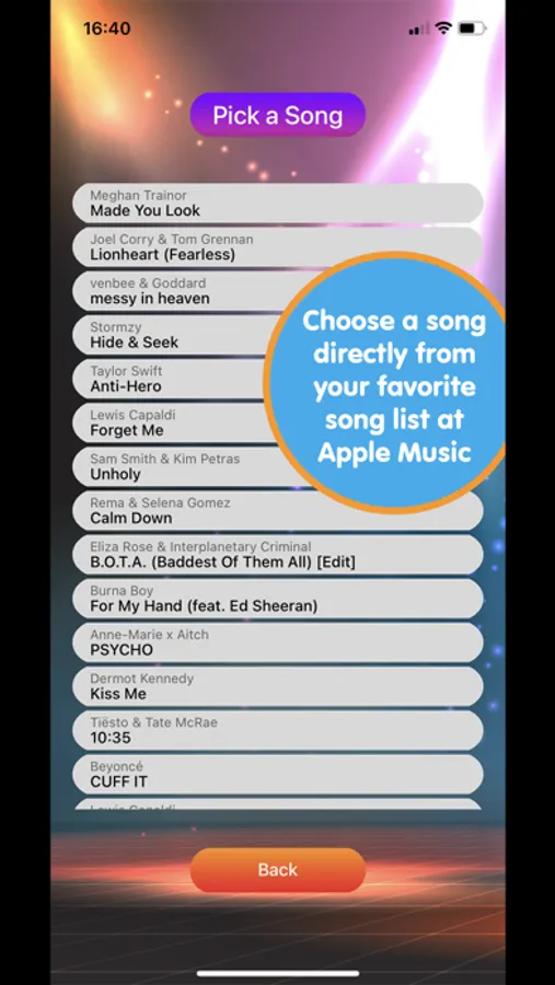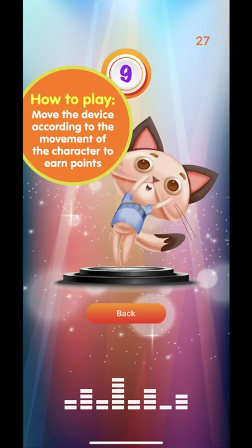 HOW TO PLAY: Immediately after selecting a song and character, the game will begin. Hold the device, follow and imitate the character's movement by moving the device in the right direction. Each correct movement capture earns the player one point. The goal of the game is to score as many points as possible.