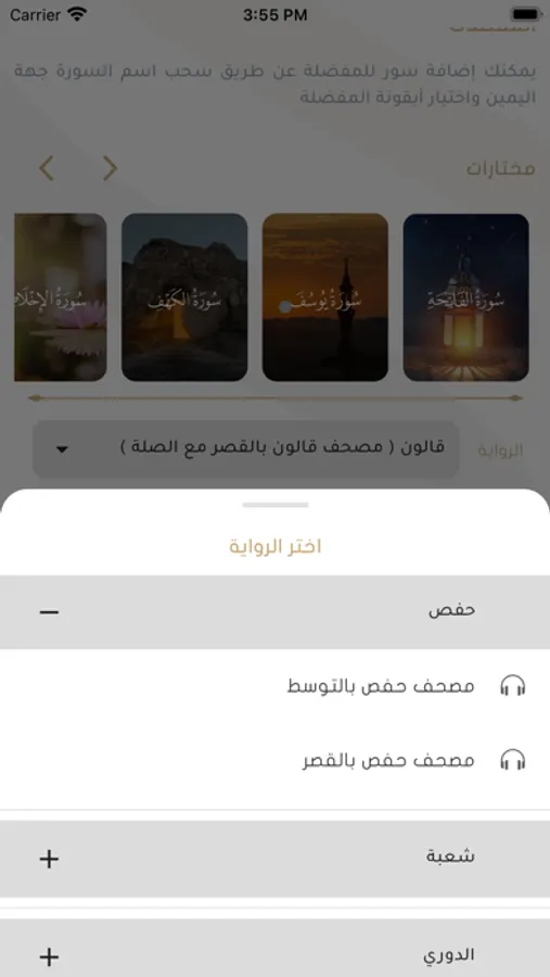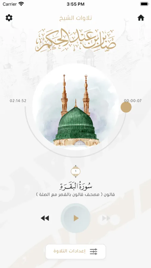 • تطبيق تلاوة بصوت فضيلة القارئ الشيخ صابر بن عبد الحكم بالقراءات العشر؛ حفص، شعبة، الدوري، قالون، ورش، السوسي...