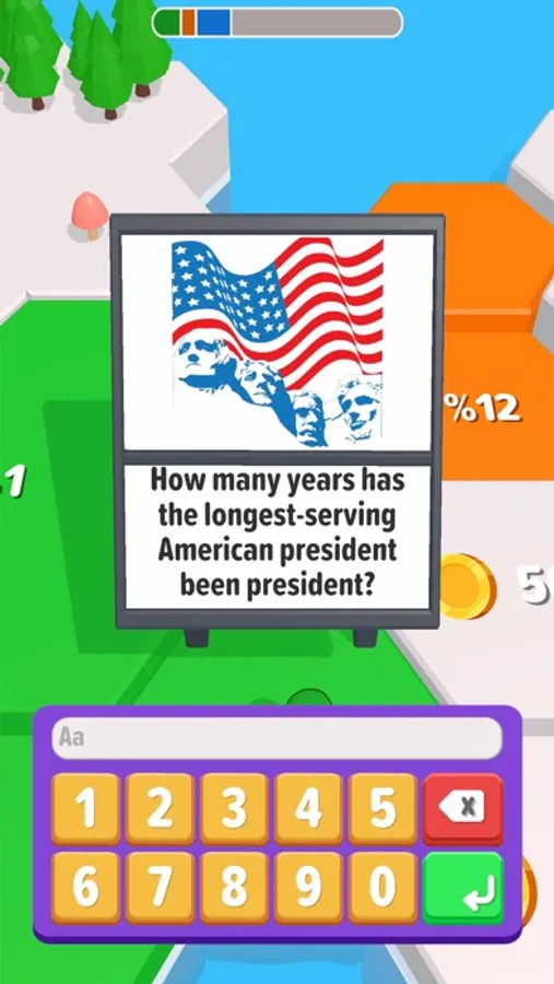 The war started! Buy the fields before your opponent and answer the questions with correct guesses. The more correct guesses you make, the more money you earn. So you can conquer more territories. If you are good enough, you can also take over your opponent's territories by guessing better than your opponent.