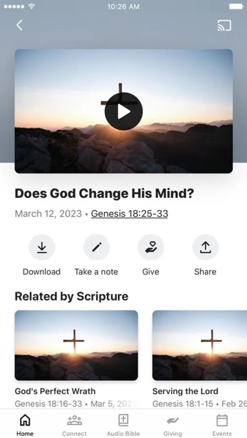 This app will help you stay connected with the day-to-day life of our church. With this app you can: watch or listen to past messages; stay up to date with push notifications; share your favorite messages via Twitter, Facebook, or email; and download messages for offline listening.
