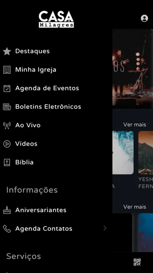 * Conteúdos (Áudio/Vídeo): Permite visualizar e ouvir os conteúdos da Igreja disponíveis no App;