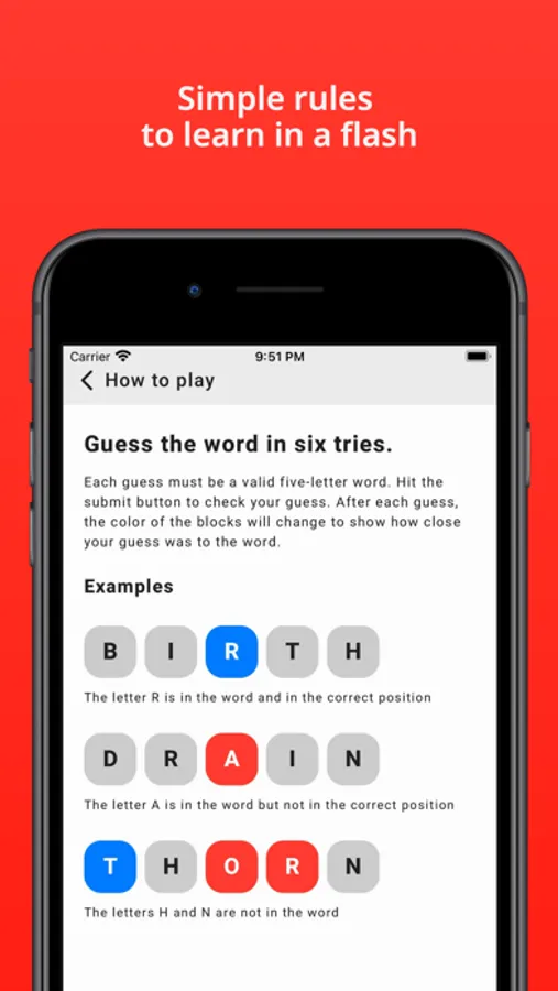 - The blocks will change color to indicate the position of correct, incorrect and non-existing letters